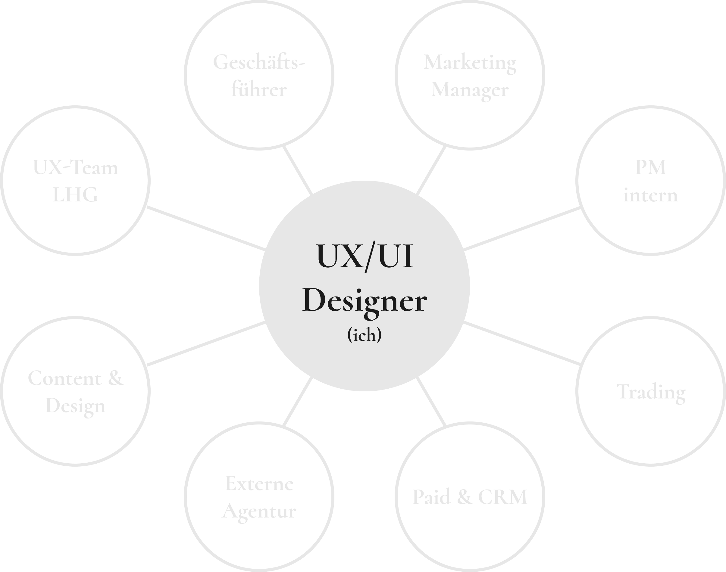Die zentrale Schnittstelle zwischen Design, Entwicklung und Business. Ich arbeite mit einem breiten Netzwerk an Stakeholdern zusammen, vom Geschäftsführer über Marketing, Trading, Content bis zum Paid und CRM. Dazu komme ich in regelmässigem Austausch mit dem UX und Design Team der Lovehoney Group sowie dem Projektmanagement der externen Entwicklungsagentur.